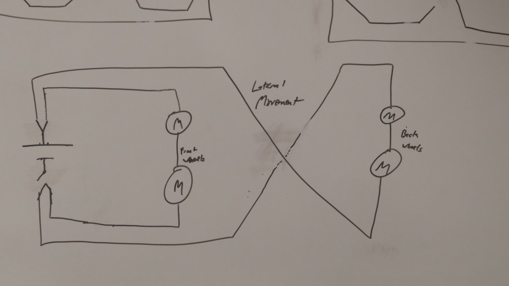 While all the projects on this page would make it seem like I only did extra projects my senior year, perhaps my proudest project was my sophomore year. It was my first year on my high school robotics team, and we had just finished up our season. Our team was asked to give a presentation to the school board about our club and the robot we had made for our season. Myself and another student wanted to create something else to present in order to show off to the school board, as well as prove our abilities. What we came up with was to take the basic chassis of one of our past robots and turn it into a go-kart. By the time we were informed that we were going to give the presentation to the school board, we had three days to prepare. Once we realized what we wanted to create, it left us only two days to go through the entire design process. As evident by me talking about it here, we were in fact able to retrofit one of the robot chassis so it was able to hold a person. It was incredibly fun to make, and over the following two years of being on the team it was a wonderful publicity piece. The picture on the far left is me right before our presentation to the school board during my sophomore year. The middle picture is one of our schematics during our planning phase when we were trying to figure out how to make the chassis able to drive the weight of a person. The far right picture was during my junior year and is of me driving around the intermediate school principal during an event our club was presenting at.