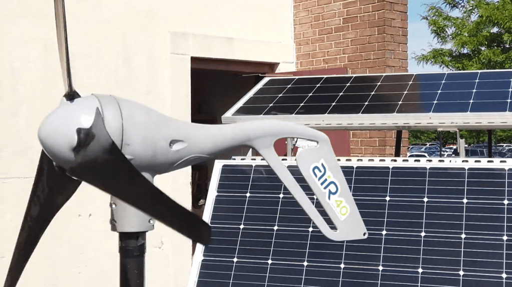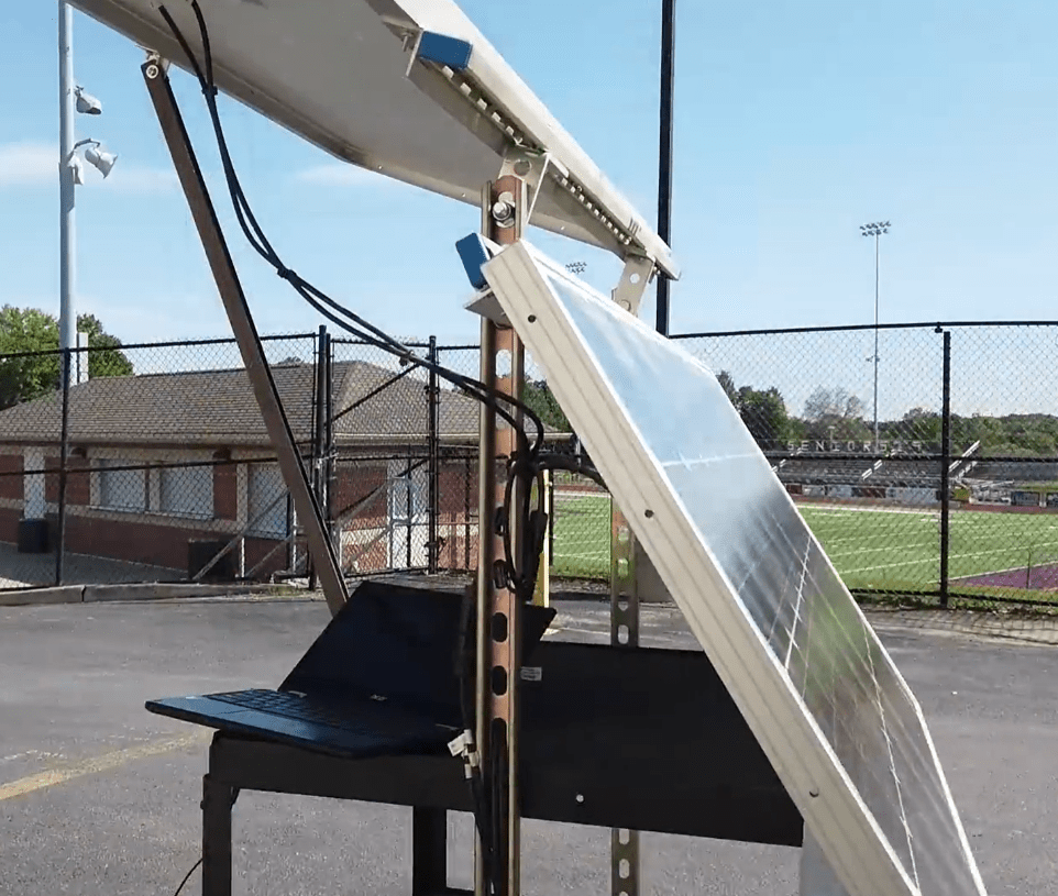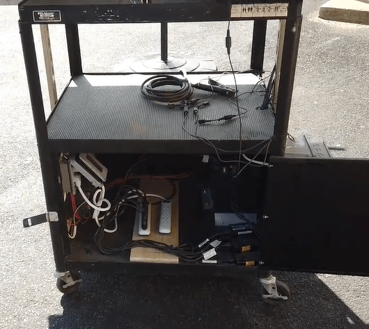 Yet another project that I helped with during my senior year was part of a district-wide green-initiative. I assisted in the creation of a wind turbine and portable solar-cart that the school could use for renewable energy sources. The only parts that we purchased for these projects were the physical turbine, the solar panels, and the primary converter to take the solar power into usable AC power. We were able to mount the wind turbine on the stand of an old fan we found. This allowed us to make adjustments to it and test our electronics. Later plans were to mount it on a permanent pole on the roof of the high school, but that did not happen while I was there. With the solar cart, as seen in the second picture, we used an old rolling TV cart in order to both house all the electronics, mount the solar panels, and have a place to rest devices once plugged into the system. We designed it so both panels can be turned to face the sun (as shown in the third and fourth pictures) but if the cart needs to be moved, the top panel can be folded down and it can be wheeled through a standard door. These projects were incredibly interesting to work on and the first renewable energy projects I worked on.