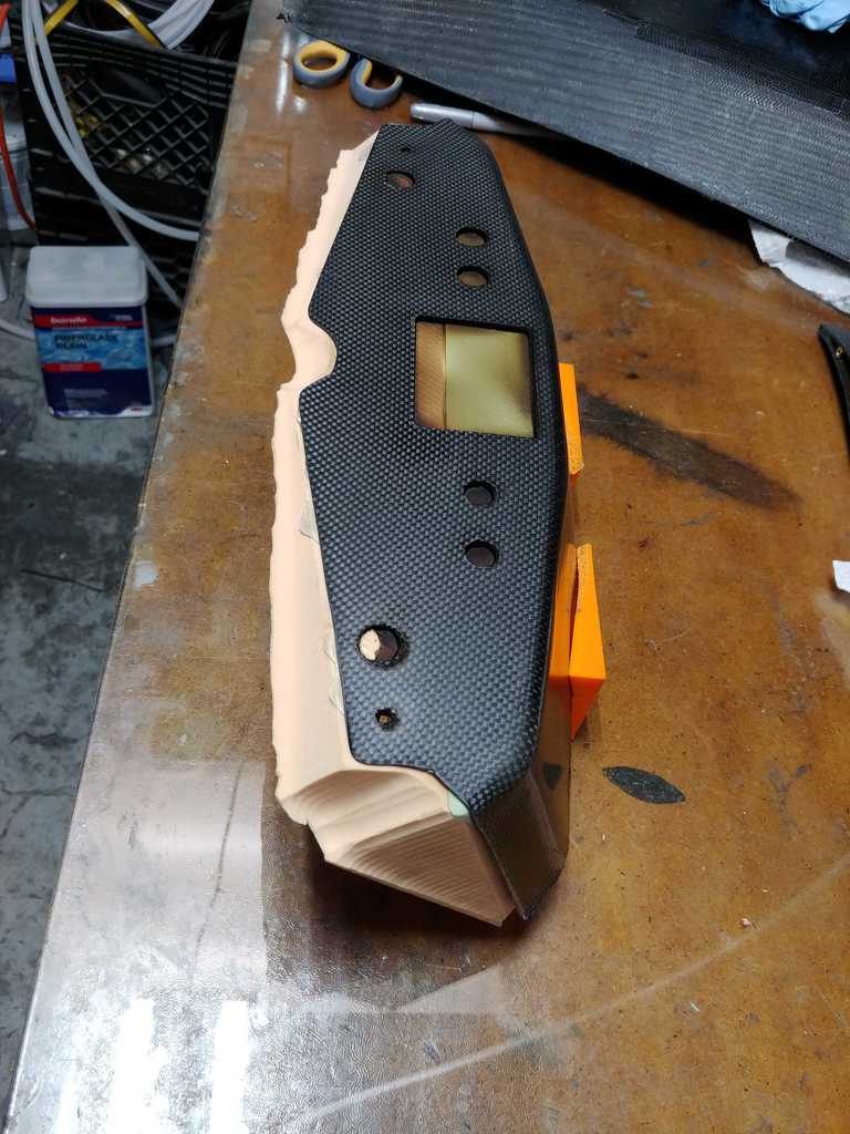 Due to my lack of experience in vehicle-dynamics-specifics, as well as my general knowledge of vehicle specifics lacking beyond the general concepts, I wholeheartedly dedicated myself to helping the team through the machining aspect. As I had been machining for three years before joining the team, I already had a very solid base that could be built upon by the more experienced machinists. The pictures above show a brief encapsulation of what I helped with. On the left is a carbon fiber layup created for the dashboard of our car that we laser-cut holes into for buttons and a screen, I helped make the holder so it would sit flat in the laser cutter. On the right is a steering column adapter that was created entirely from scratch from just a stock piece of aluminum using a manual lathe for all the main components and a CNC mill for the part on the end that isn’t round. Because I had been 3D modeling in SolidWorks for four years before joining the team, I also assisted in the design work for the car. For all of my contributions, my skills coming into the team were greatly beneficial but were refined and altered by more experienced members of the team as the year went on.
