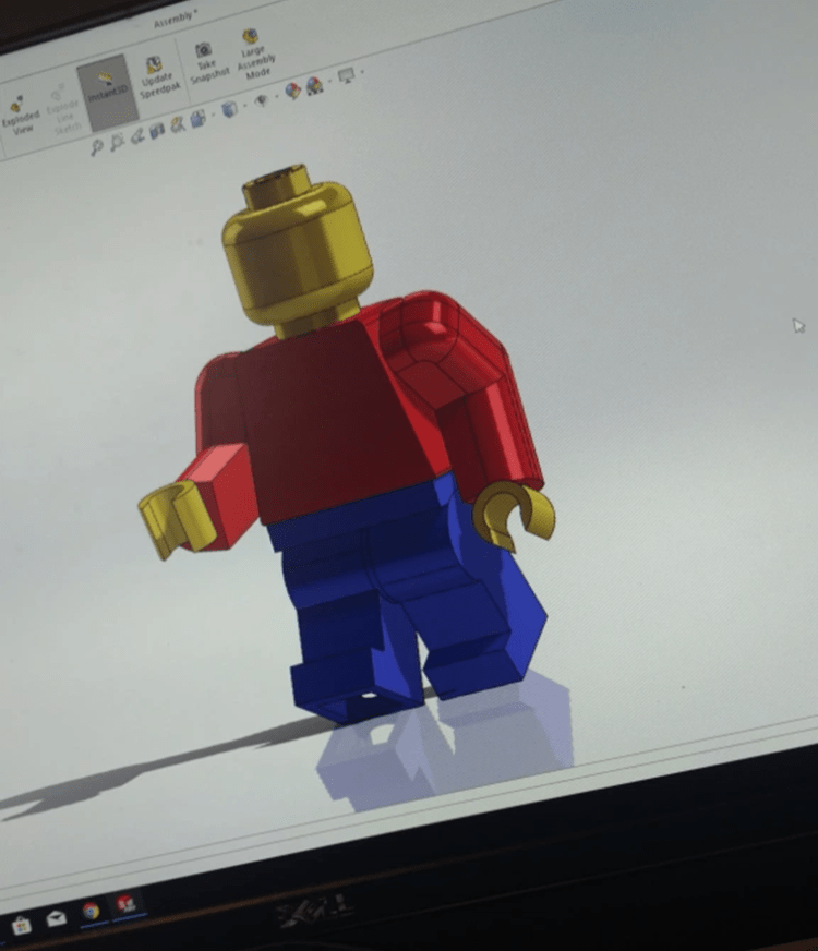 I began working with SolidWorks my freshman year of high school (fall of 2015) during a class focused around modeling and drafting. Our final project was to choose a random object and create a realistic model in SolidWorks. As shown to the left, I chose a Lego mini-figure. The next year I joined my high school’s robotics team, where they were using the program in order to model both individual parts and the entire robot. This allowed me to continue to practice my modeling and usage of the program.